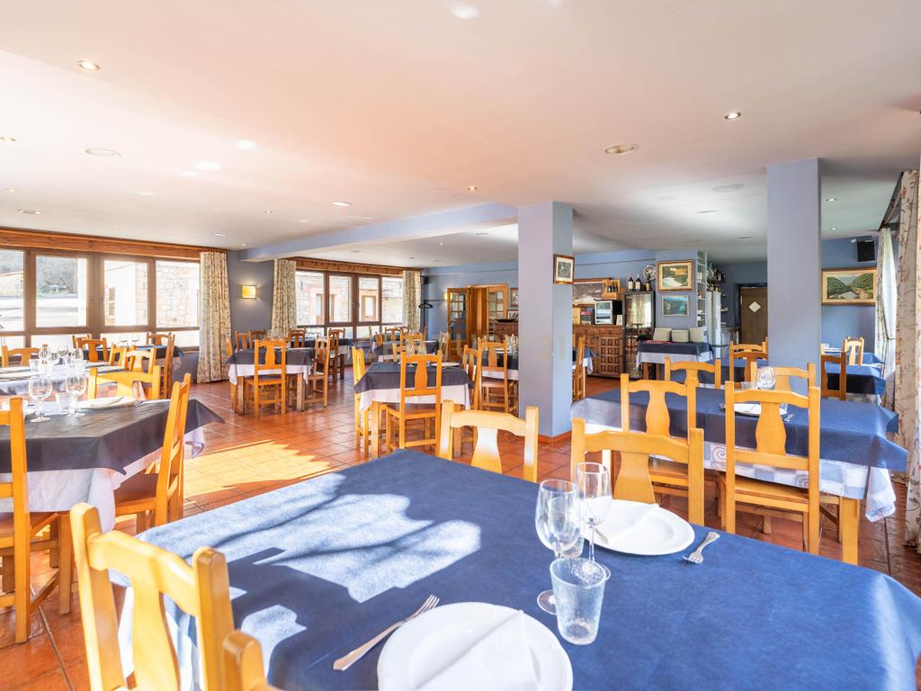 - Edificio principal (450 m2 construidos) con la siguiente distribución: Planta baja: restaurante con capacidad para 65 personas, cocina y oficina. Planta sótano, salón para eventos privados, local de servicios centrales y aseos. Planta primera con 4 habitaciones dobles con bañera de hidromasaje y terrazas privadas con vistas al embalse.
